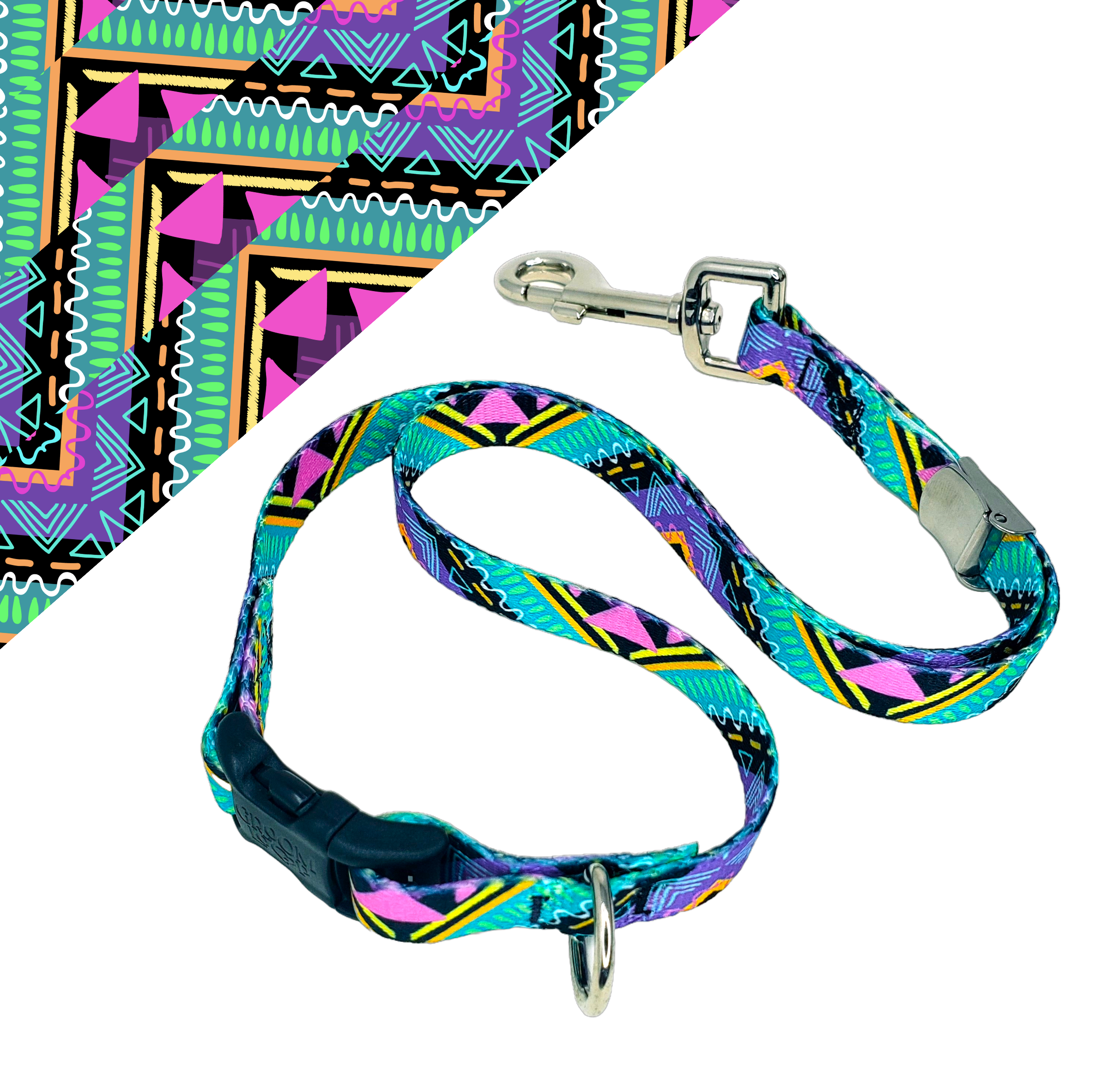 Blue Bone Camo Design design. 5/8" Polyester webbing, 3 sizes available 16", 20", 24". This Grooming Loop has a (Locking slider clip) that allows you to adjust to the dogs neck with ease. Includes D-ring for extra security if needed.