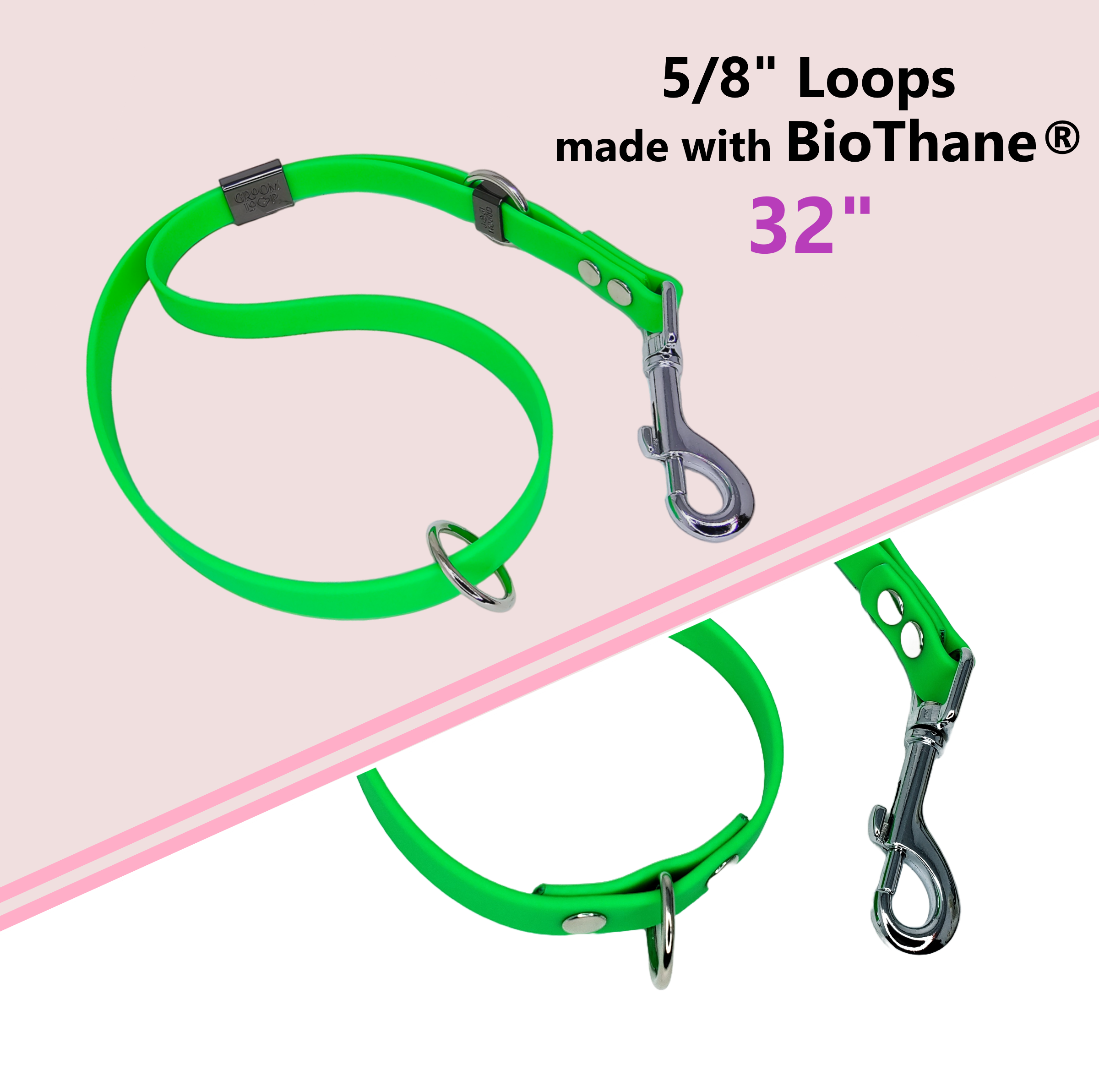 XXL (Slip-Lead) Grooming Loop. Great for Extra Large dogs. Made with Waterproof BioThane® materials. This Loop is great from Tub to Table!
